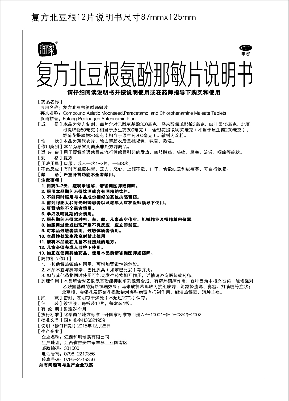 复方北豆根酚那敏片